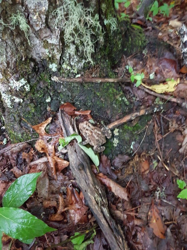 Unterwegs sah ich eine kleine Kröte. Genau eine solche, nur grösser, hatte die Schlange gestern beim Shelter gefressen.