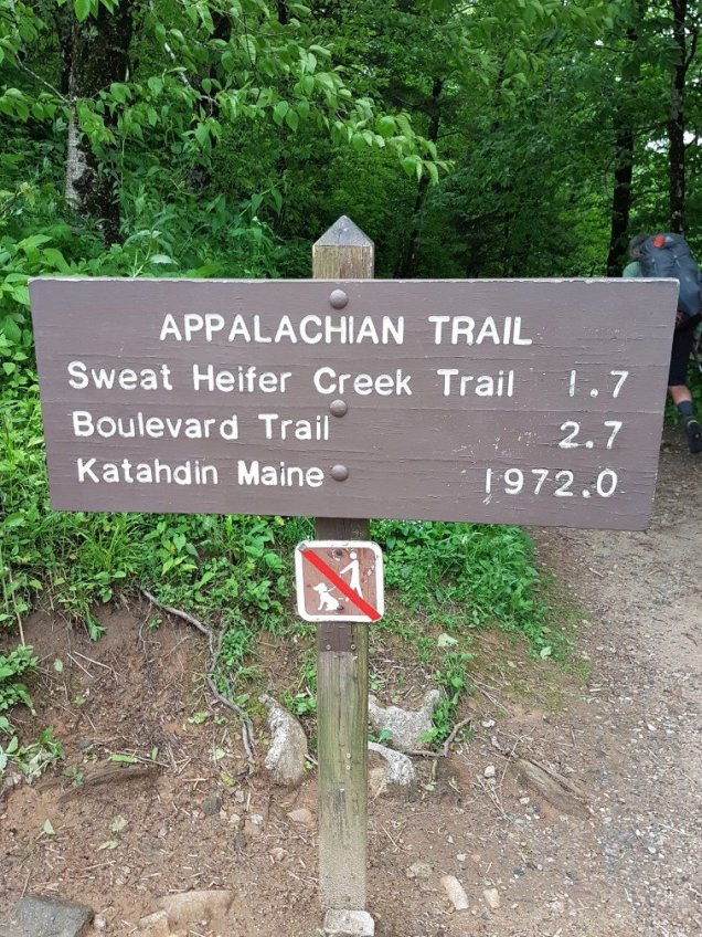 Beim Einstieg in den Trail wurde noch auf den A.T. hingewiesen und ein Schild zeigte die verbleibende Distanz bis zum Katahdin Mountain.