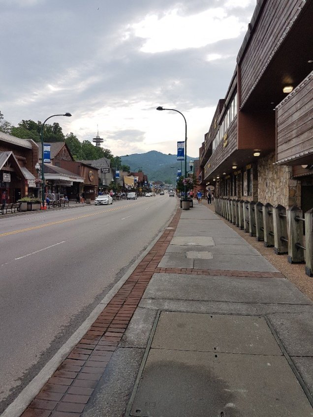 Nach der ersten Nacht in Gatlinburg im Motel 6 (Billigkette) standen wir auf und beschlossen, Frühstücken zu gehen. Bis zur Main Street mussten wir nicht lange gehen. Dort fanden wir dann schnell ein Restaurant, welches die klassischen reichlichen Frühstücksspeisen serviert. Nach dem gestrigen opulenten Abendessen war ich mit Pancakes mit frischen Beeren, einem Orangensaft und Kaffee mehr als bedient. Monk liess es sich zünftiger schmecken, mit Kartoffeln, Speck etc.