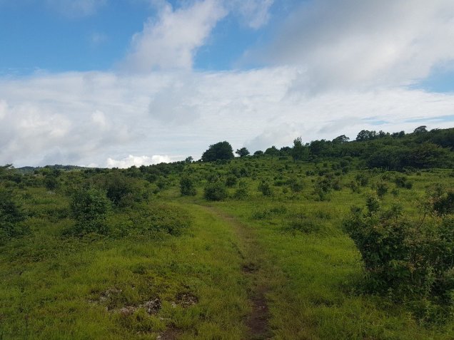 Kaum war ich am Laufen, fing ein Gewitter an. Also Regenschutz über den Rucksack und Regenjacke an. Ich hatte ordentlich zu tragen, es ging wieder mal bergauf.