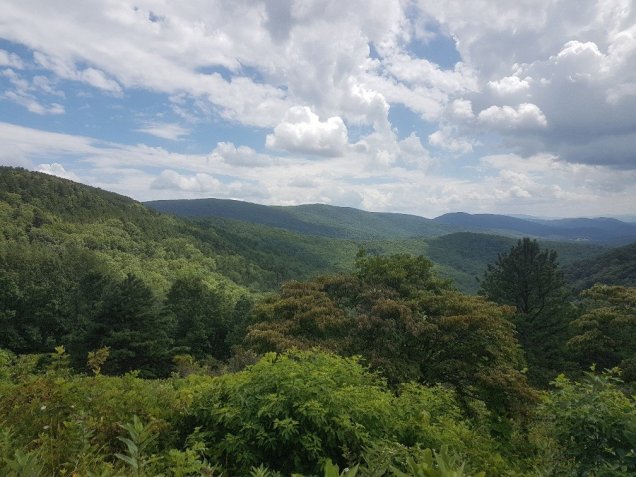 Hier die Aussicht ab einem der Aussichtspunkte auf dem Skyline Drive.