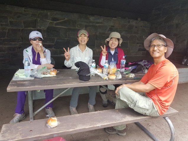 Ich liess Monk davonziehen. Beim Byrds Nest #3 Hut machte ich eine ganz kurze Pause, als vier asiatisch aussehende Hiker auftauchten. Es waren drei Frauen und ein Mann.