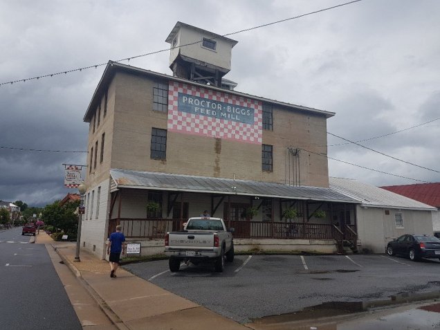 Stripes musste seine Wäsche machen, wir liefen los in die Main Street Richtung Brauerei. Front Royal ist für amerikanische Verhältnisse eine historische Stadt und hat eine sehr schön herausgeputzte Main Street. Überall sind schöne Blumenkörbe in voller Blütenpracht aufgehängt.