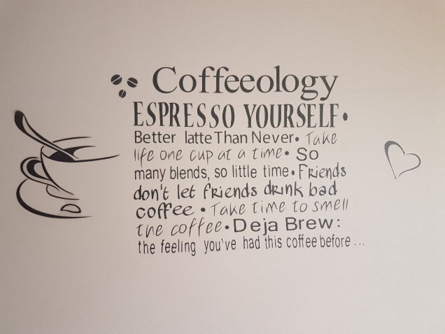 Schräg gegenüber war das Café Amore, ein Italian/New York themed Café mit Barbetrieb, also gingen wir dorthin. Dieses Lokal war sehr hübsch eingerichtet und verfügte sogar über einen Bereich bei den Schaufenstern, der wie eine gute Stube eingerichtet war mit Comfort-Ledersesseln, Perserteppich etc.