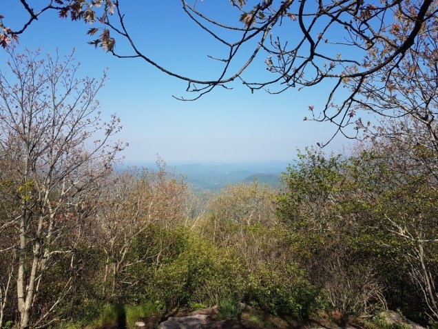 Auf dem Gipfel traf ich noch Pebbles, welcher mit einem Freund ebenfalls in Hiawassee war, um Vorräte aufzufüllen und mal wieder ein richtiges Essen zu haben. Interessant war, dass der Freund Vegetarier ist, was bei einem gewaltigen Unterfangen wie dem A.T. vermutlich eine noch grössere Herausforderung ist. Nach dem Abstieg ging es gleich wieder an den nächsten Anstieg nochmals 120 Höhenmeter.