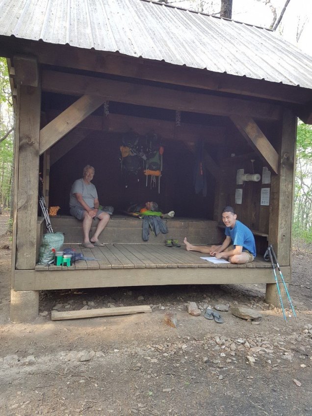Gizmo, Monk (Keith hat sich seinen Trailnamen gegeben) und ich kamen praktisch miteinander an. Beim Shelter, welcher zweistöckig gebaut ist waren schon zwei Männer, nach uns kamen nach und nach noch 6 Personen an, der letzte um 19h30.