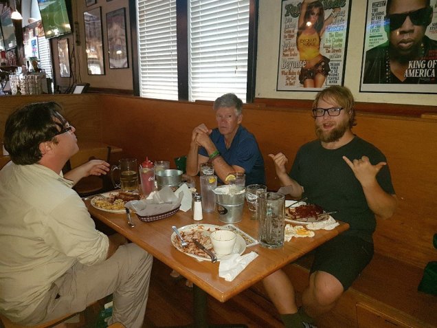 Das Hostel, welches auf Spendenbasis funktioniert, war sehr speziell. Auf einer Farm hat der Eigentümer eine grosse Garage in ein Hostel umfunktioniert. Das ganze ist speziell beim Bubble (d.h. Start der A.T. Saison) als Party place bekannt. Jetzt war ein bunter Mix an Leuten dort. Als wir reinkamen, sass Monk mit diversen Personen um einen Tisch, jemand hatte Spaghetti, Fleischbällchen und Tomatensauce gekocht, dazu ein Salat und Dip-Gemüse. Wir wurden spontan auch eingeladen, uns am Rest zu bedienen.
