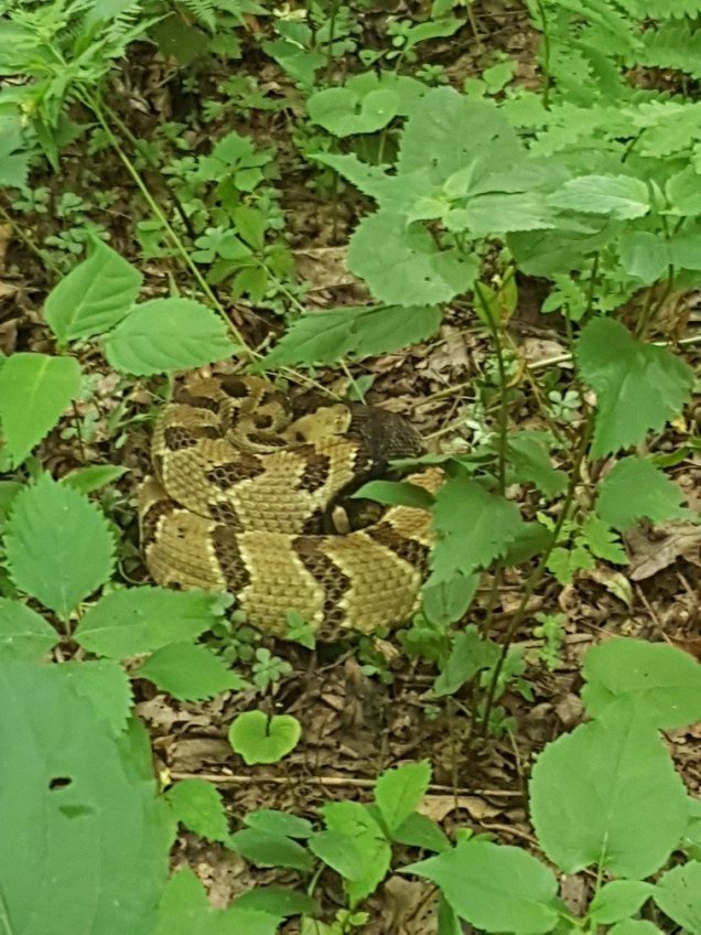 Nun stand der Cove Mountain auf dem Programm, an dessen Ende der Dragon Tooth (Drachenzahn), eine Felsformation auf einer Höhe von 3020 Fuss über Meer stand. Wir hatten schon im Vorfeld gehört, dass uns beim Abstieg eine herausfordernde Kletterei bevorstand. Auf dem Weg dorthin lag eine grosse schwarze Schlange von etwa 1.2m auf dem Trail und sonnte sich. Als ich auf dem Trail daher kam, schlängelte sie sich schnell davon, ich konnte nicht einmal ein Foto machen 😯.