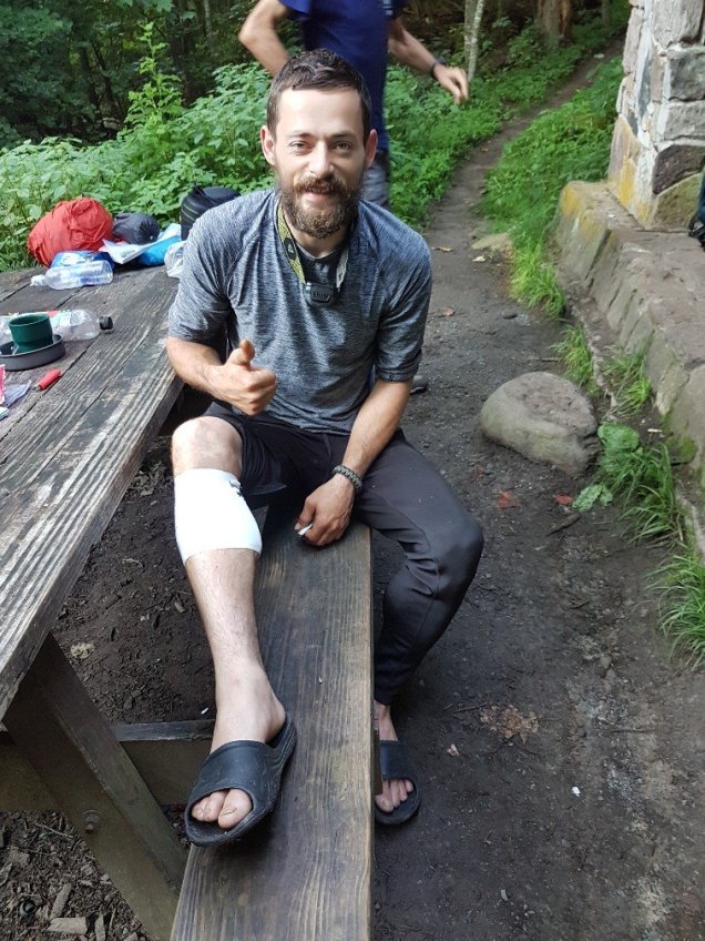 Beim weiteren Abstieg auf dem Trail war ich müde und etwas unkonzentriert, prompt stolperte ich und stürzte über das Bord. Zum Glück stand dort eine Fichte, so konnte ich den Sturz abfedern. Einzig mein Schulterblatt wurde beim Aufprall auf einen Wurzelstamm etwas lädiert. Ich zog den Rucksack ab, rappelte mich auf und kletterte wieder auf den Trail zurück.